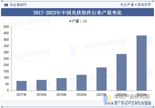 中國(guó)光伏組件產(chǎn)量的上漲對(duì)異質(zhì)結(jié)(HJT)電池行業(yè)產(chǎn)生了積極影響,主要體現(xiàn)在推動(dòng)技術(shù)創(chuàng)新和成本下降。隨著光伏產(chǎn)業(yè)規(guī)模的擴(kuò)大,異質(zhì)結(jié)電池作為高效電池技術(shù)的代表,其轉(zhuǎn)換效率更高,適應(yīng)市場(chǎng)對(duì)高效產(chǎn)品的需求。同時(shí),光伏組件需求的增加推動(dòng)了異質(zhì)結(jié)電池生產(chǎn)線的擴(kuò)展,加速了大規(guī)模生產(chǎn),進(jìn)而降低了制造成本,使得異質(zhì)結(jié)電池在未來的市場(chǎng)競(jìng)爭(zhēng)中具有更大優(yōu)勢(shì)。2023年中國(guó)光伏組件行業(yè)產(chǎn)量為433.1GW。